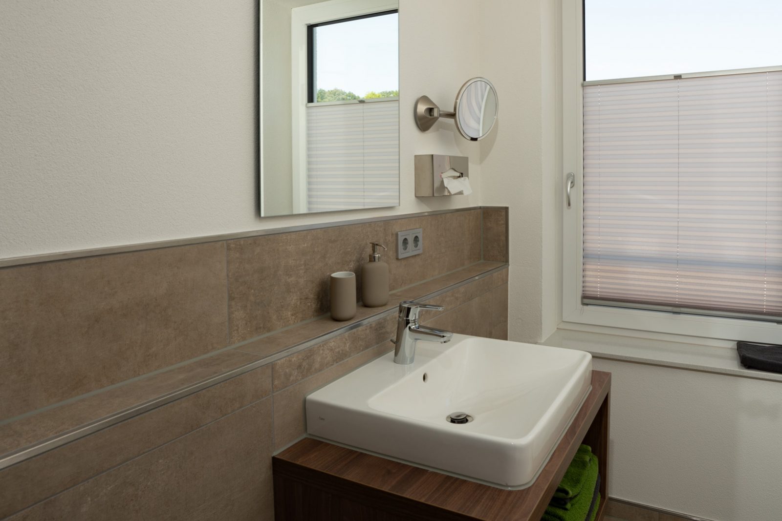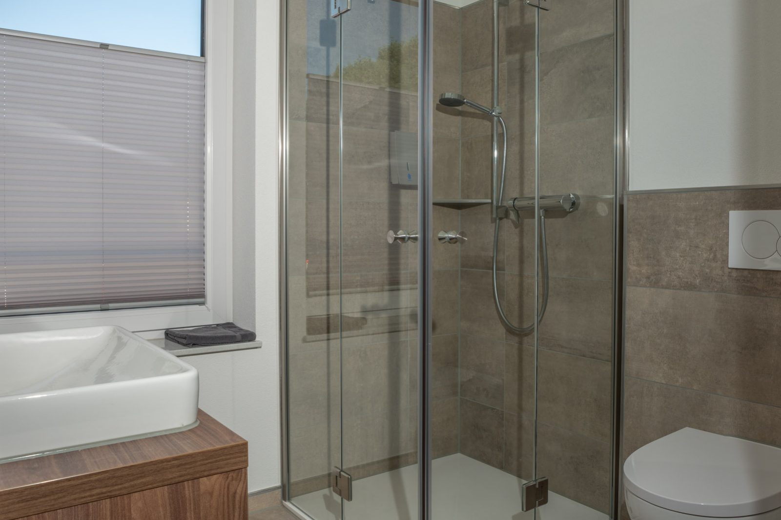 Ein barrierefreies Doppelzimmer für Personen mit Gehbehinderung und Rollstuhlfahrer steht Ihnen im Erdgeschoss des Gästehaus Hosbein zur Verfügung.