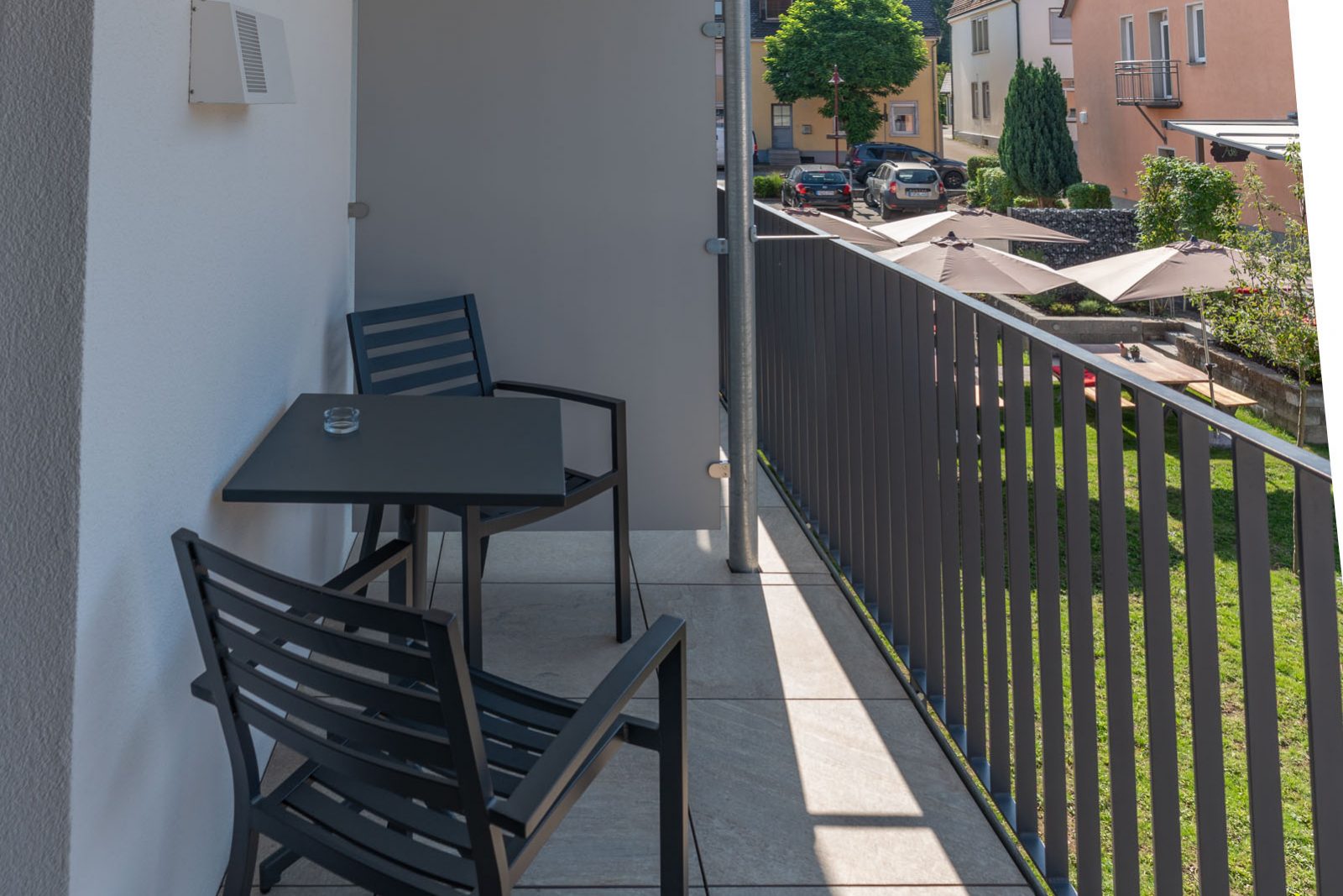 Jedes Zimmer verfügt über einen Balkon mit Blick in den Garten.
